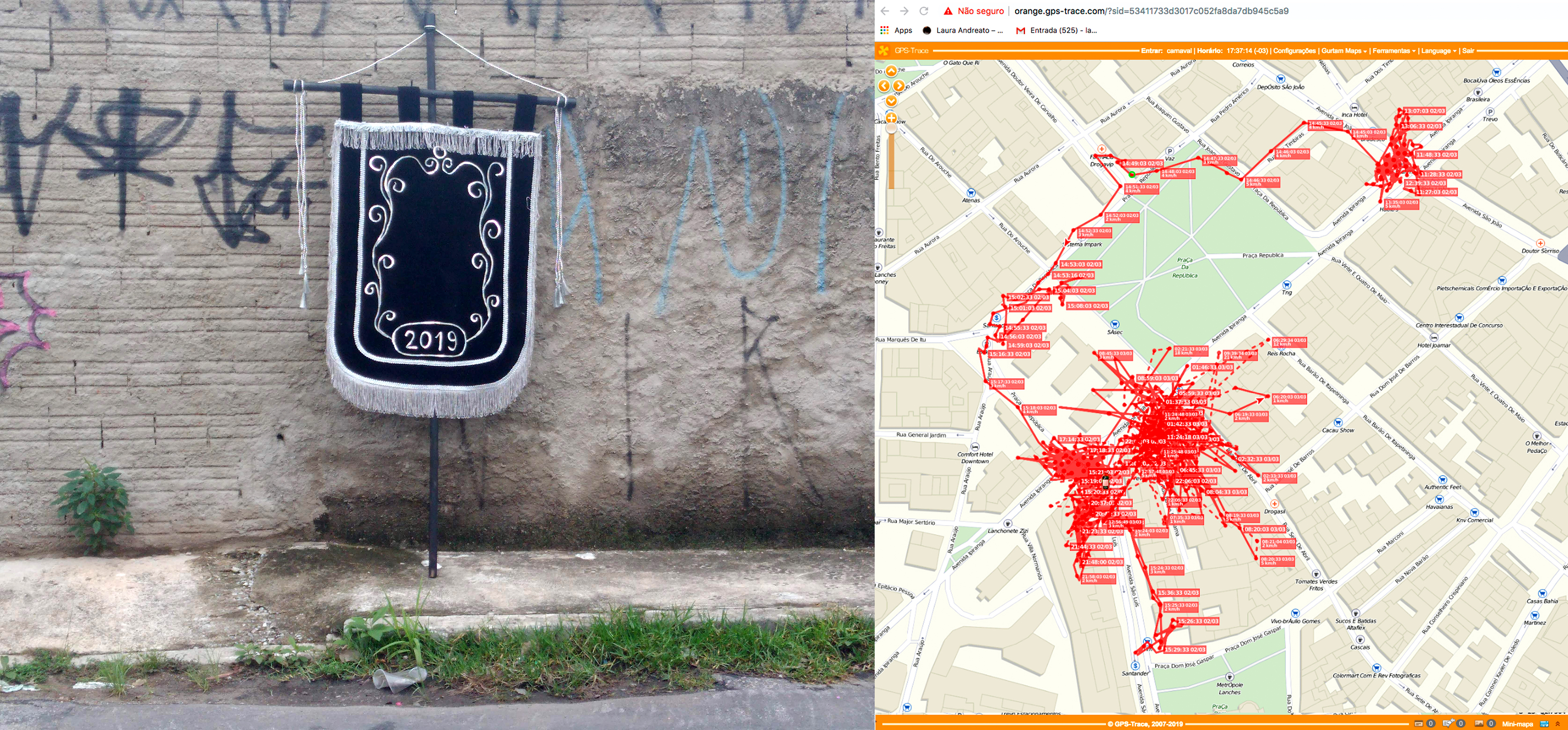 Durante o carnaval de 2019 um estandarte foi lançado nas ruas do centro de São Paulo. Seu percurso foi registrado por um rastreador nele instalado.